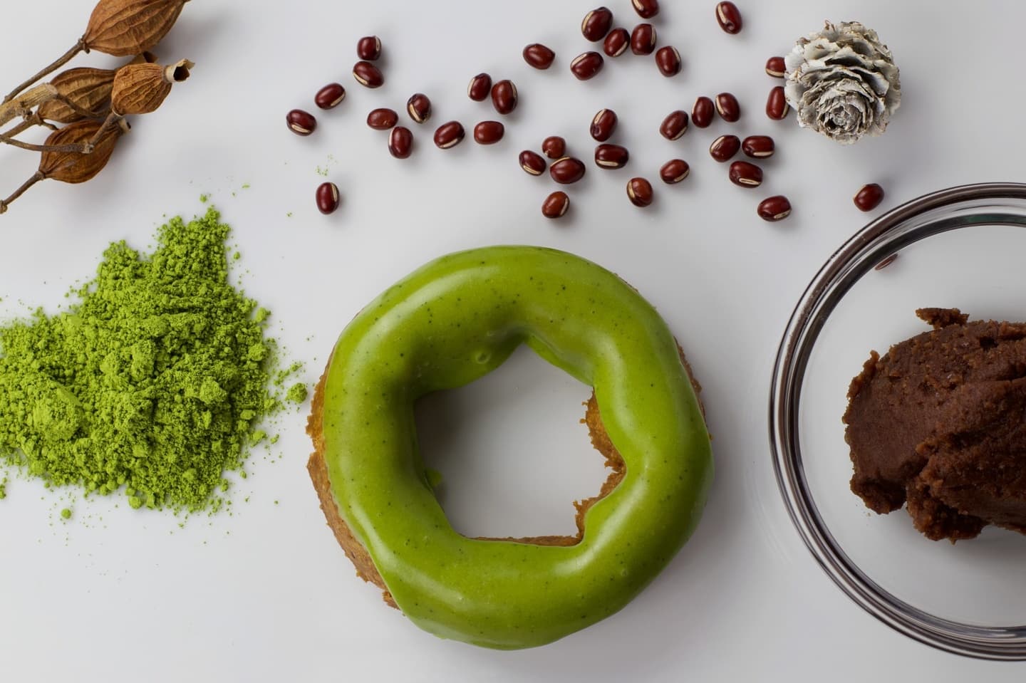 オーガニックの抹茶と長野県大町産小豆を合わせてドーナッツを作り、