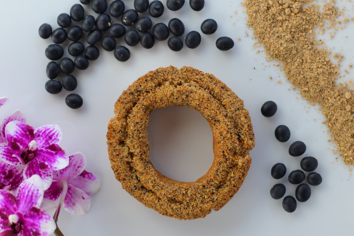 畑で育った落花生(Qなっつ)と自家製七味を使ったドーナツ。
