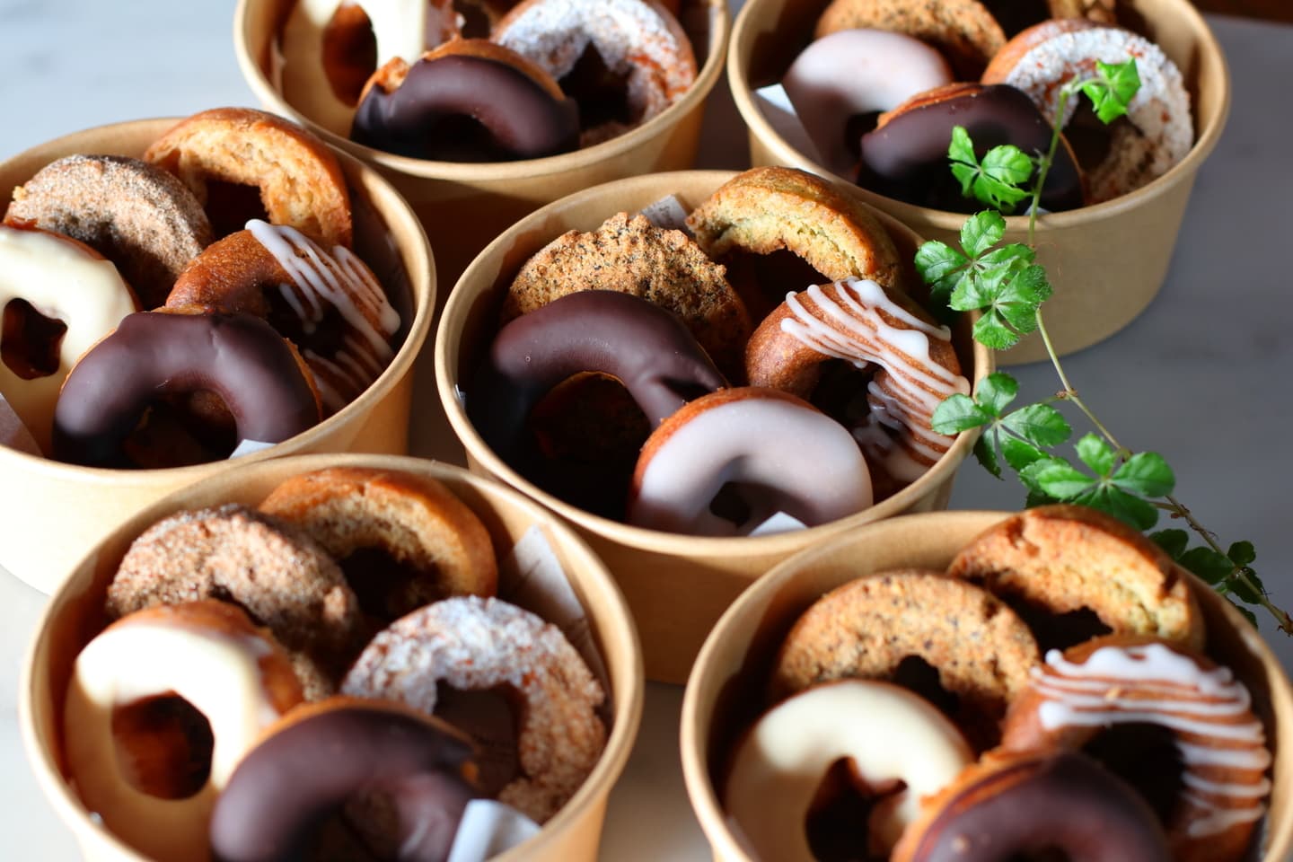 ドーナツはお任せになりますが、チョコ系を多めなどフレーバーのリクエスト、ご希望がございましたら、お気軽にお問い合わせください。