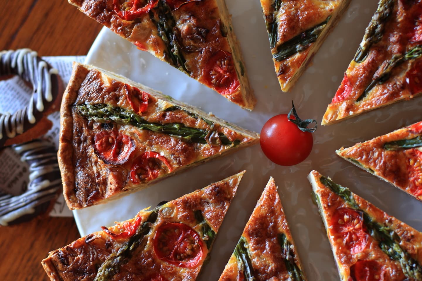 甘くないタルト生地に、季節の野菜とベーコン、パルミジャーノチーズなどを合わせて週替わりでご用意いたします。
