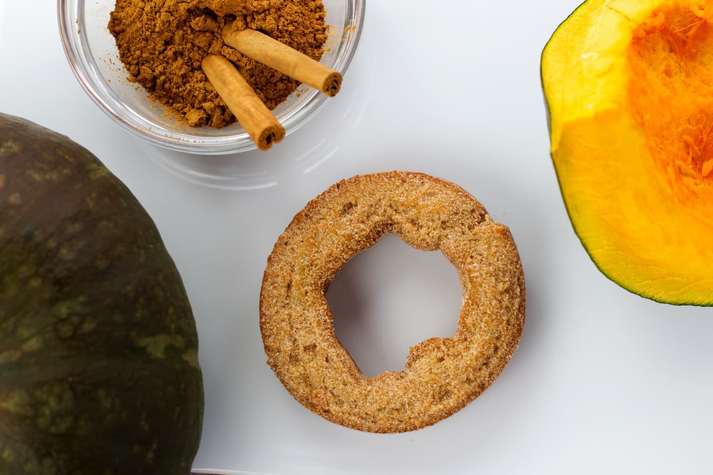 我が家の畑で元気に育った坊ちゃんかぼちゃとシナモンを合わせて、ドーナツを作り、仕上げにシナモンシュガーをコーティング。